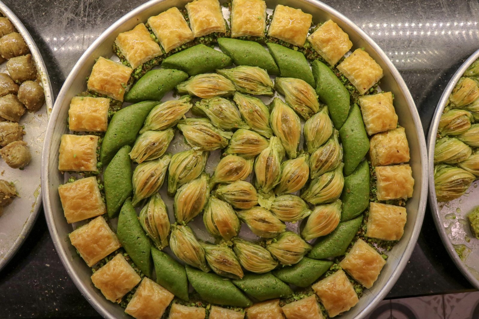 Lapisan-lapisan filo yang tipis, diisi kacang, dan direndam sirap. Baklava Pistachio adalah yang paling mewah.